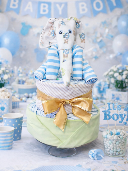 Here's a decoration that's as useful as it is adorable! If you're new to making diaper cakes, here's a good place to start. This "cake" is simple enough for crafters of almost all skill levels. Learn how to make it using our step-by-step tutorial or order your own custom diaper cake today!
