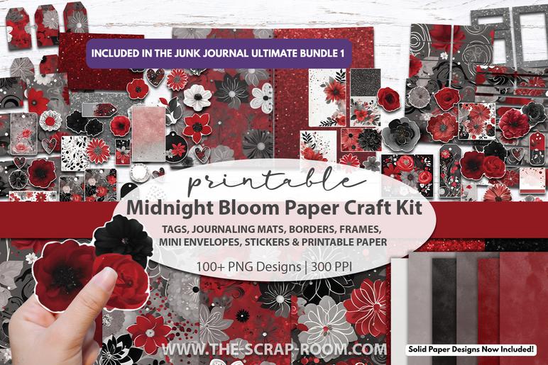 Make a statement with the Bold Red, Black, and White Floral Printable Junk Journal Kit. Paper crafters will adore the dramatic high-contrast florals and coordinating ephemera for journals, scrapbooks, and cards. Beyond standard paper craft projects like scrapbooking, junk journaling and card making, these elements would also make stunning framed mixed media art for your home.